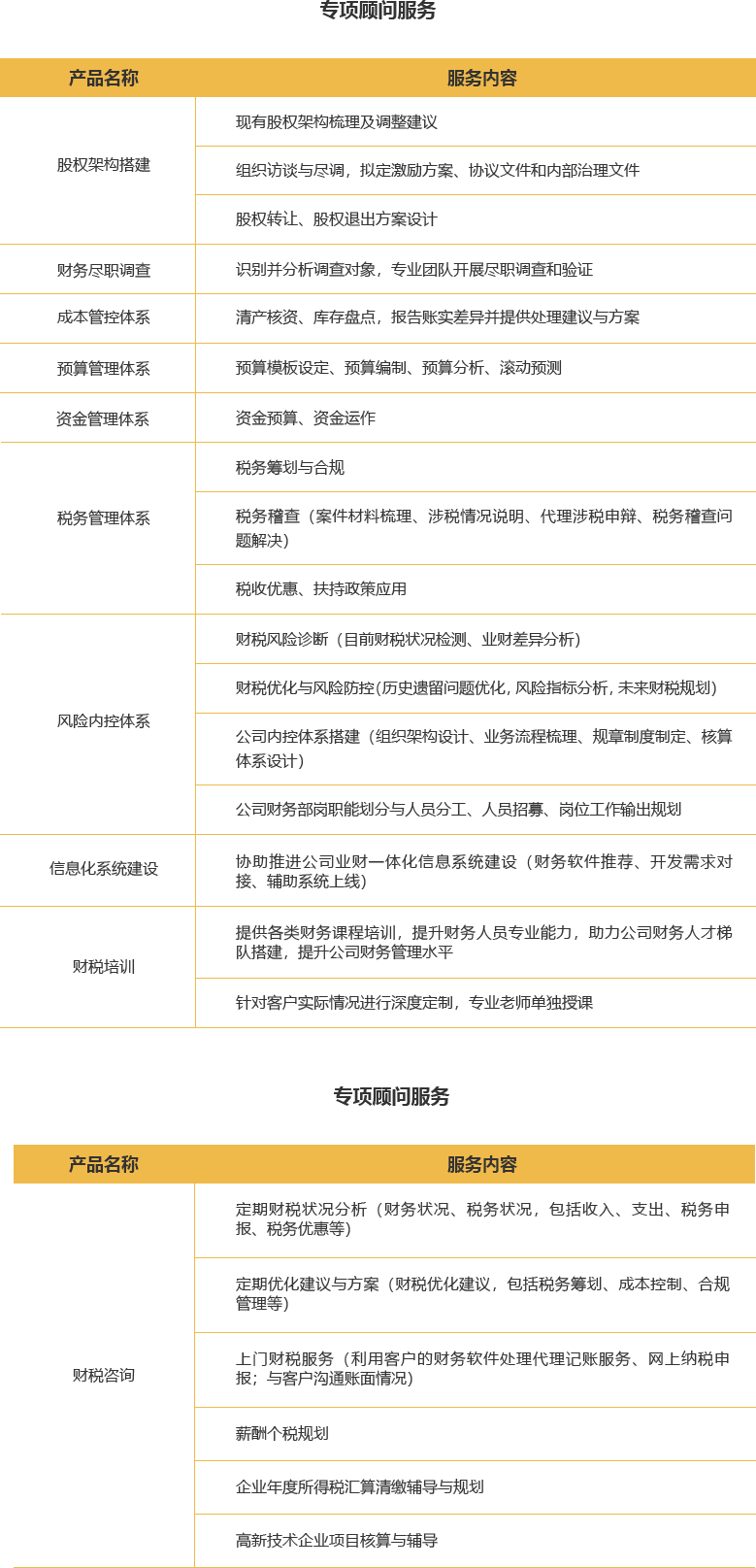 適用范圍:專項顧問服務,財稅咨詢,業(yè)財融合