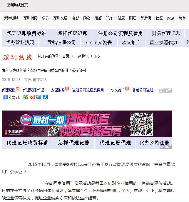 2015年11月,南京安盛財(cái)務(wù)榮獲江蘇省工商行政管理局頒發(fā)的省級(jí)“守合同重信用”公示證書(shū)