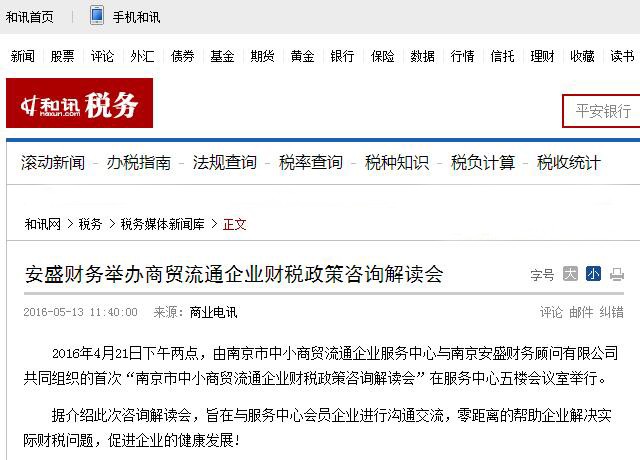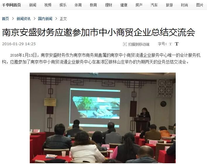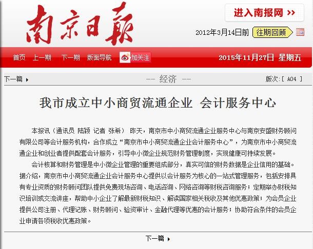 2016年1月13日,南京安盛財(cái)務(wù)作為南京市商務(wù)局直屬的南京中小商貿(mào)流通企業(yè)服務(wù)中心唯一的會(huì)計(jì)服務(wù)機(jī)構(gòu)。
