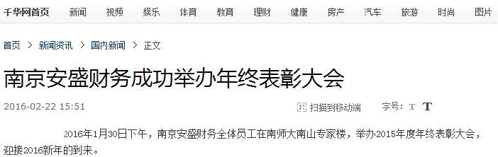 2016年1月30日下午,南京安盛財(cái)務(wù)全體員工在南師大南山專家樓,舉辦2015年度年終表彰大會(huì),迎接2016新年的到來(lái)。